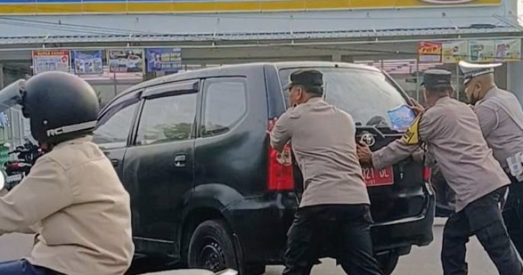 Tanpa ragu, Kapolsek bersama personel langsung turun tangan membantu mendorong kendaraan tersebut ke tepi jalan agar arus lalu lintas kembali lancar. Petugas juga memastikan pengemudi aman dan kendaraan dapat ditangani dengan baik sebelum melanjutkan perjalanan.