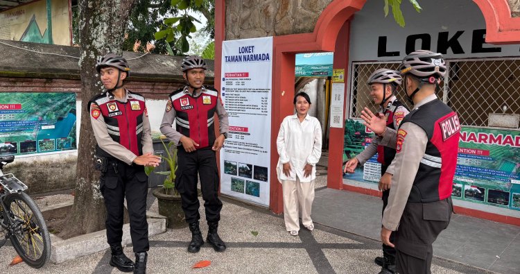 Sementara di kawasan wisata Taman Narmada, personel Sat Samapta melakukan dialog dengan petugas pengelola untuk meningkatkan pengawasan terhadap aktivitas pengunjung. Langkah ini dilakukan sebagai upaya antisipasi tindak pidana maupun aktivitas yang berpotensi mengganggu keamanan dan kenyamanan pengunjung.