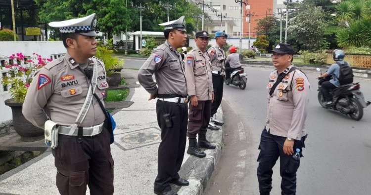 Selain mengamankan jalannya aksi, petugas juga melakukan pengaturan arus lalu lintas di sekitar lokasi kegiatan untuk memastikan kelancaran kendaraan masyarakat dan mencegah terjadinya kemacetan.
