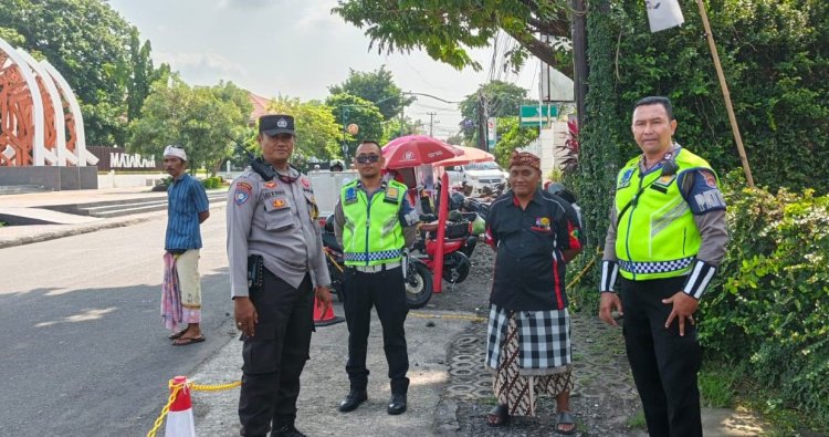Selain memastikan situasi keamanan tetap kondusif di area pura, personel Polsek Selaparang juga membantu pengaturan arus lalu lintas di sekitar lokasi kegiatan. Langkah tersebut dilakukan untuk mengantisipasi kemacetan sehingga aktivitas masyarakat umum tetap berjalan lancar.